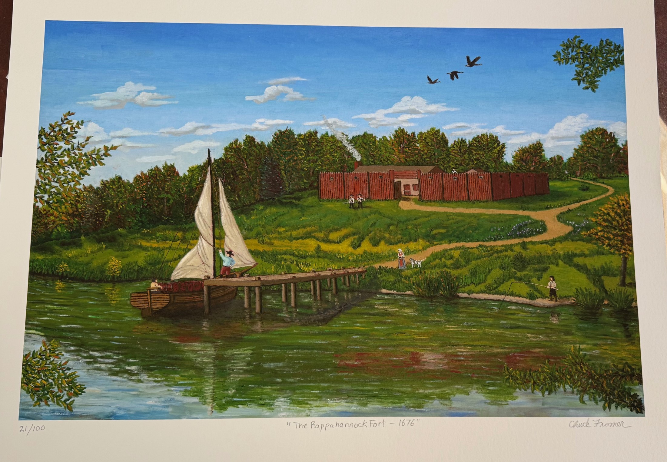 This unique and limited print depicts local artist, Charles Fromer’s interpretation of the Colonial-era fort built in the late 1670s on land that is now part of the Fredericksburg Country Club.