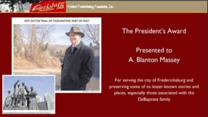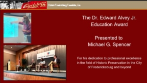 - John Hennessy – For his dedication to researching, writing, and sharing local history and the advancement of historic preservation in the Fredericksburg area